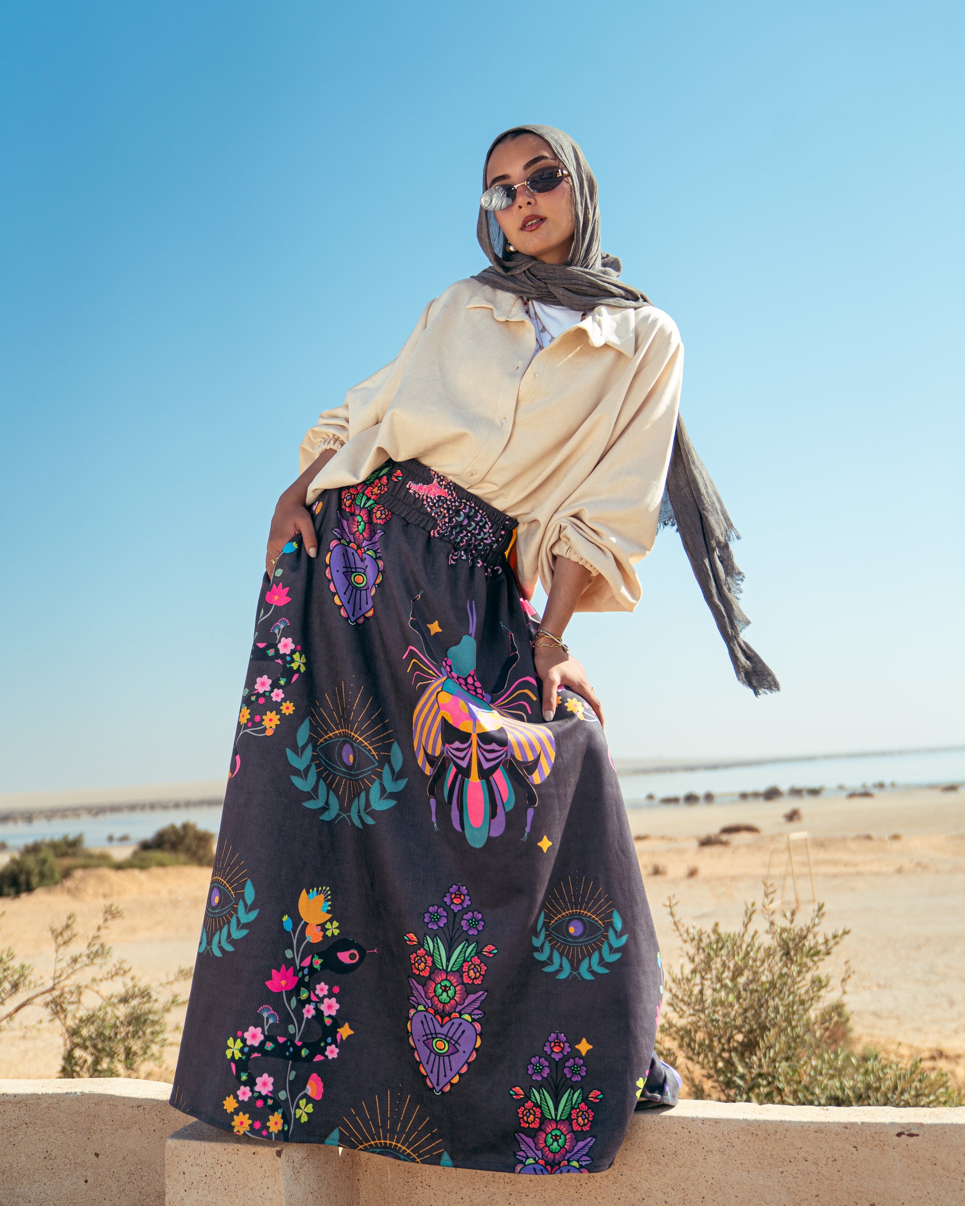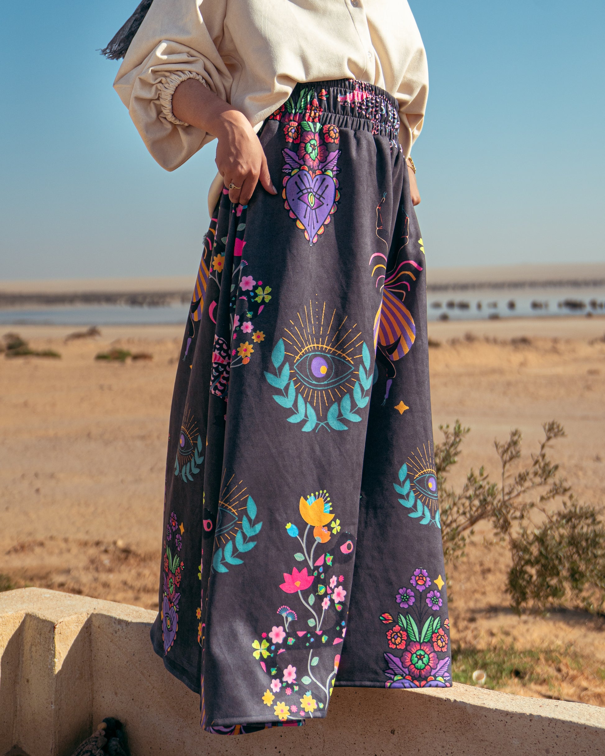 - Shapes on the skirt may vary in distribution from one piece to another but all skirts have the same shapes and colors.